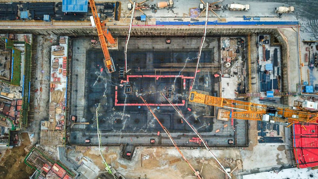 D7栋是中国光谷·数字经济工业园(二期)单体修建中修建最高且施工难度最大的一栋,该单体修建设计高度191.3米(地上40层,地下2层),现在正处于地下室底板施工阶段。修建接纳筏板基础,整个底板浇筑作业保存体量大,基坑深的施工难度。
